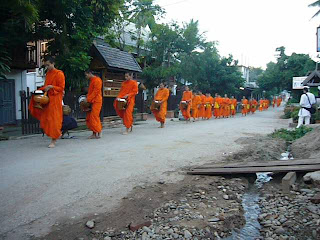 frühmorgendliche essensspende an die mönche in luang prabang: