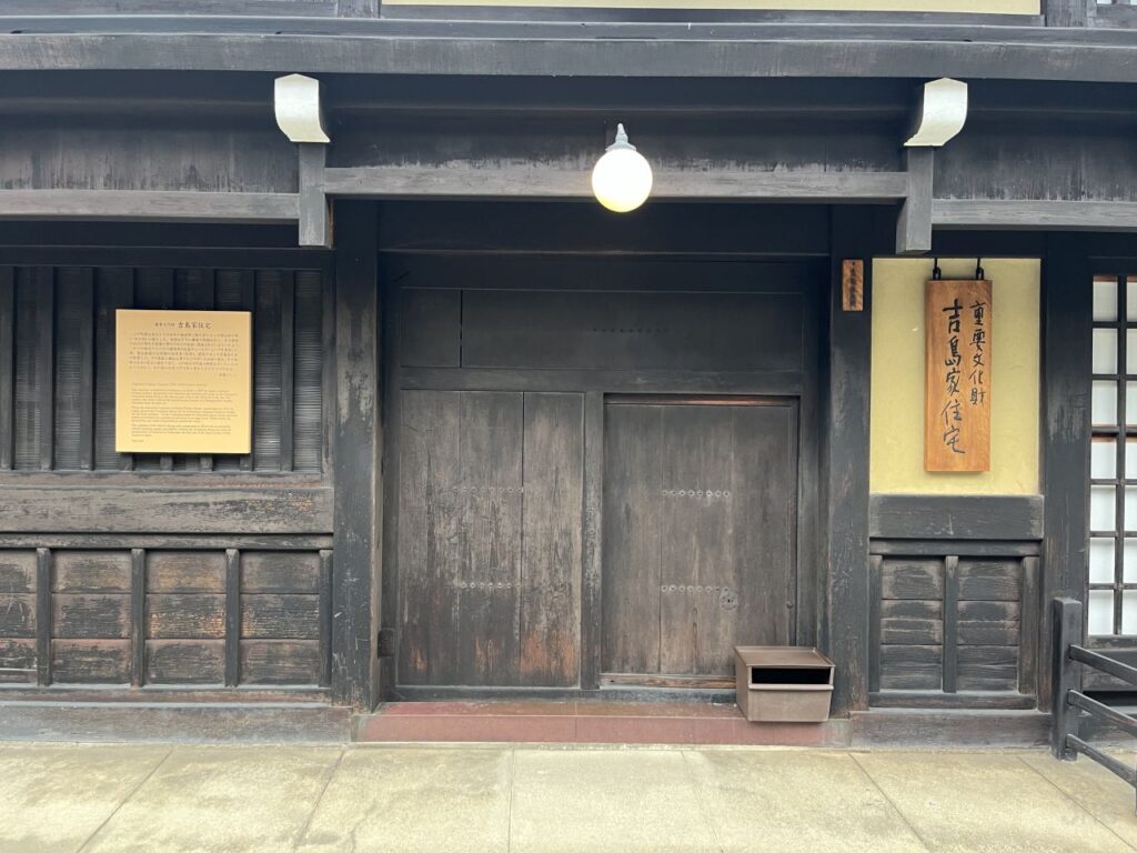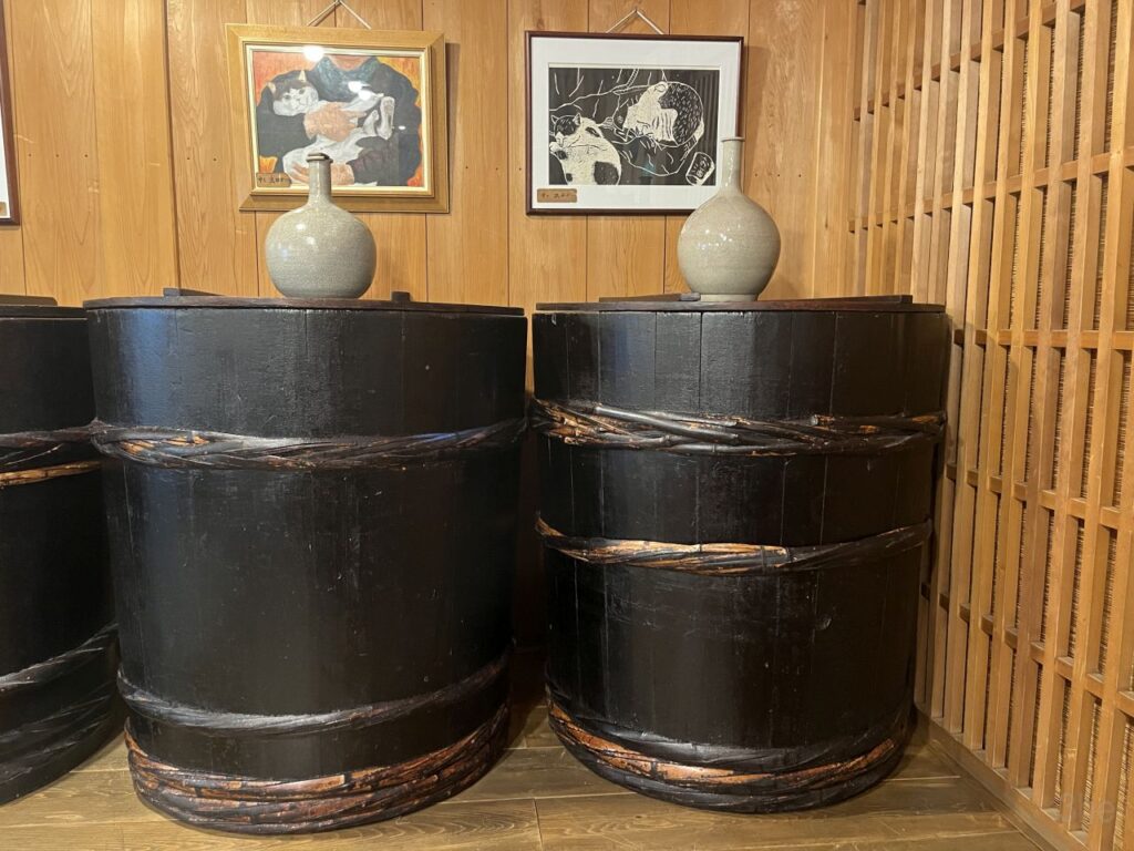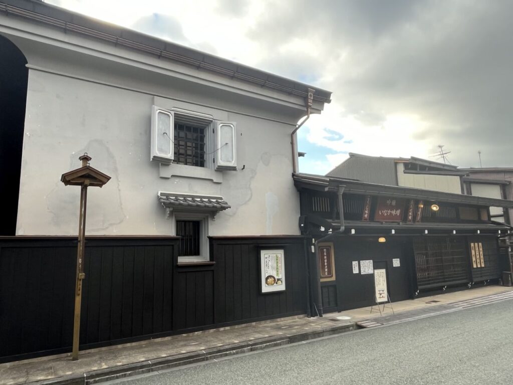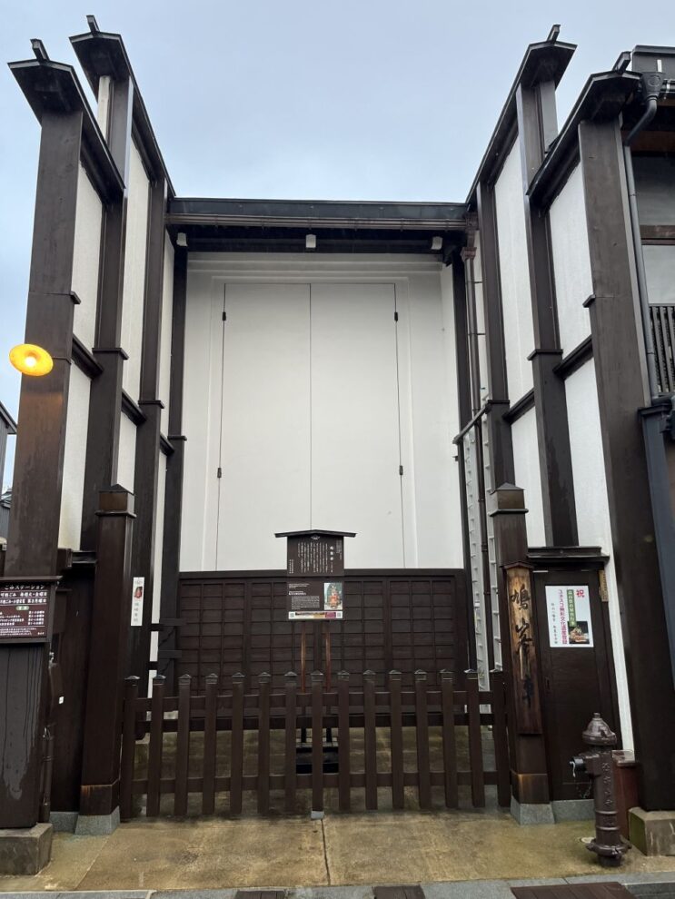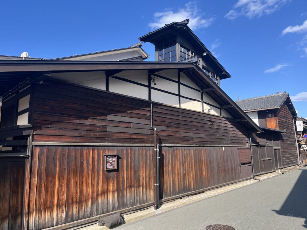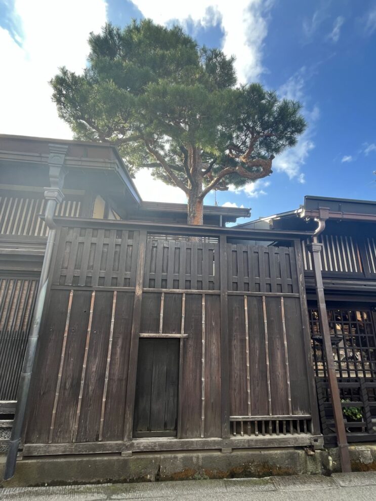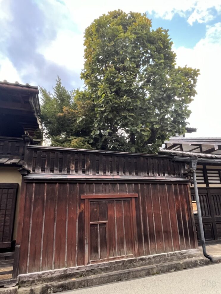 Was wohl in den Fässern ist?Dunkle und helle Misopaste.Zwischen den traditionellen Holzhäusern dann auch immer wieder ebenso traditionelle gemauerte Häuser. Die alle diese dicken Läden vor Fenstern und Türen haben. In den Samureihäusern in Kanazawa war darin immer die Treasury ausgestellt. Es handelt sich also um Lagerhäuser für die wertvollsten Güter. Im Gegensatz zu den feuergefährdeten und auch immer wieder abgebrannten Holzhäusern sind diese gemauerten Gebäude um einiges feuerfester. Die andere hübsche Straße auch nochmal bei Tageslicht.Sakebrauereien erkennt man oft an den davor gestapelten Sakefässern. Aber nicht immer, wenn Sakefässer sich irgendwo stapeln, ist es eine Sakebrauerei. Manchmal ist es auch ein Schrein 😉 Siehe Meiji Schrein in Tokyo mit den gespendeten Sakefässern.Auf jeden Fall ein Erkennungszeichen ist der Ball aus Zedernholz. Bei der Brauereiführung wurde uns erklärt, dass der Ball aus frischen grünen Ästen aufgehängt wird, wenn nach den Wintermonaten der frische, junge Sake fertig ist und ausgeschenkt wird. Also ein bisschen wie bei den Buschenschanken das „ausgesteckt ist“, oder auch bei den Zeugelbrauereien in Nordbayern, wenn das Bier fertig ist. Der hier ist braun, weil gerade erst begonnen wird den neuen Sake zu brauen. Und Sake wurde und wird traditionell nur in den Wintermonaten gebraut. Einzig Großbrauereien mit industrieller Kühlung können das ganze Jahr über brauen.