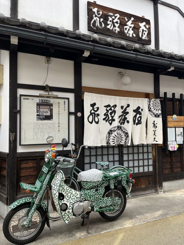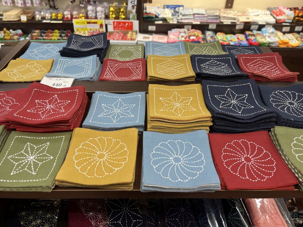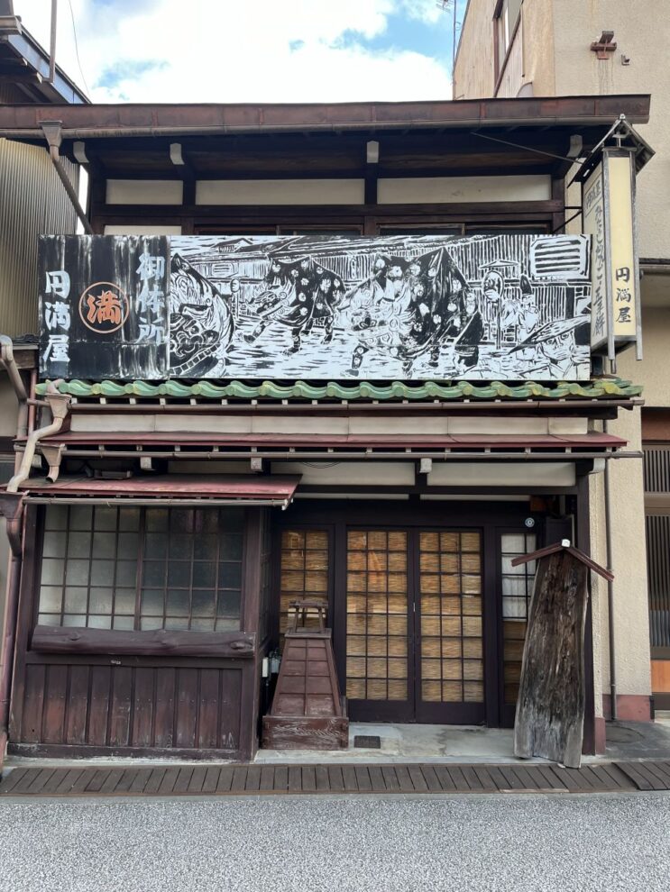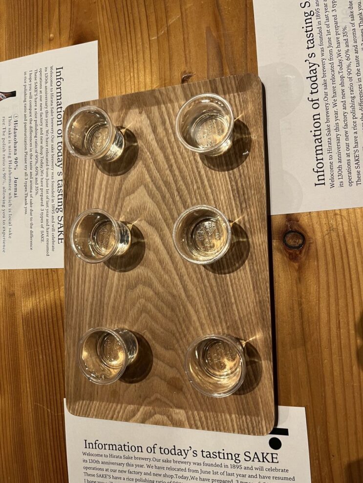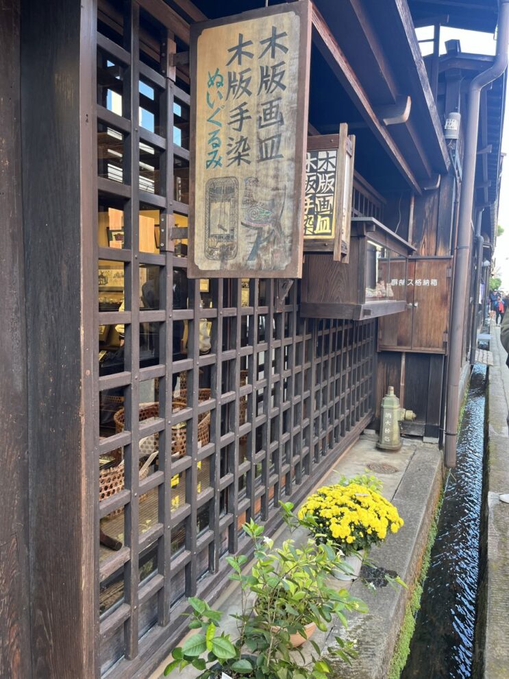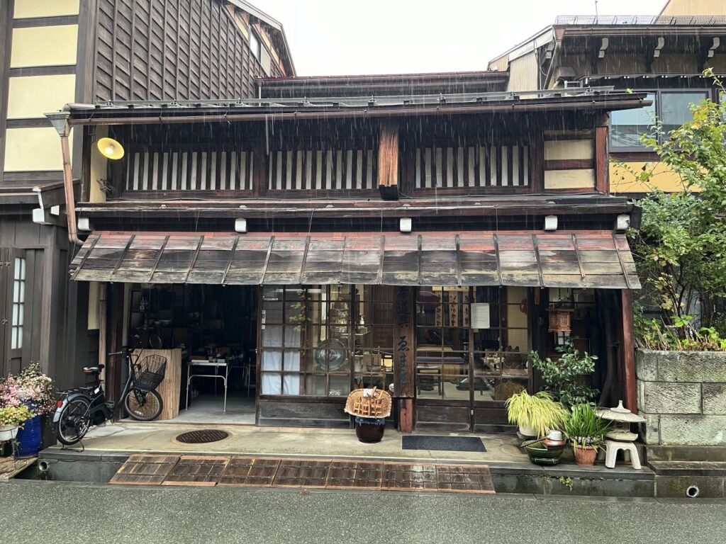 Welcome to Hida Takayama. Hida bezieht sich auf die historische Provinz Hida und wird verwendet, um Takayama von anderen Orten gleichen Namens zu unterscheiden. Touristen kommen vor allem wegen der historischen Straßenzüge mit alten hölzernen Kaufmannshäusern und Sake-Brauereien nach Takayama. Ein paar historische Tempel gibt es auch. Und zwei der bekanntesten Feste Japans finden hier statt, eines im April und eines im Oktober. Dabei sind auch wieder Umzugswagen mit Puppenautomaten im Einsatz. Es gibt ein eigenes Museum für die Umzugswagen. Da waren wir allerdings nicht drin, wie wir auch sonst wenig rundum gesehen haben. Einerseits weil wir erst nach 15 Uhr angekommen sind und in Japan die Gehsteige ja bereits ab 16:30 Uhr hochgeklappt werden, gepaart mit dem Regen und Kaffee statt Rundgang blieb da nicht viel am ersten Tag. Und am zweiten Tag waren wir lange im Hida no Sato Freilichtmuseum und hatten um 16:30 eine Sakebrauereiführung gebucht. Dazwischen haben wir uns durch Sanmachi, das Gebiet mit den beliebtesten und schönsten historischen Häusern, gewühlt. Im wahrsten Sinne des Wortes, denn alle Touristen Takayamas waren anscheinend zur gleichen Zeit mit uns dort. Keine historischen Tempel, keine Museen und Ausstellungen diesmal für uns.Gleich mal einen Happen für den kleinen Hunger. Mochi mit Obstfüllung. Mochi sind kleine Reiskuchen aus Klebreis.Und gleich in der ersten Gasse die wir angesteuert haben war eine Garage für einen der Umzugswägen. Jetzt wo wir wissen was das ist fällt es uns natürlich gleich auf.Historisches Haus, sogar noch mit historischer Tür. Wobei die Häuser, wenn ich es mir richtig gemerkt habe, zumeist aus dem 19. Jahrhundert stammen. Bemerkenswert finde ich immer die Dachlaternen, die Licht in die darunterliegenden Räume leiten. Die meisten der historischen Häuser sind Dunkelbraun, fast Schwarz, gestrichen. Manchmal ist aber auch eines in einem schönen Rot dabei. So wie dieses.Gleiche Gasse schräg gegenüber. Modernere Interpretation des hölzernen Fenstergitters, hier aus Metall. Und einer der allgegenwärtigen Getränkeautomaten. Ab der Regenstärke haben wir dann aufgegeben und das praktischerweise direkt aufpoppende Café angesteuert. Das zu unserem Glück noch auf hatte. Gerade noch so, weil es wie so ziemlich alles um 16:30 schloss. Japanische Öffnungszeiten sind uns ein ziemliches Rätsel. Und nicht nur einmal sind wir ein paar Stunden vor Ende der Öffnungszeit wieder hinauskomplimentiert worden, weil „Sold out“, oder doch vor verschlossener Tür gestanden.Windspiele aus Getränkedosen.In einem der weingen noch offenen Läden dann ein paar Untersetzer in Sashiko Stickerei entdeckt. Aber nur fotografiert, keine gekauft.Auch das Abendessen war eine Herausforderung, denn wir mussten erstmal die Straßen finden, wo es um 18 Uhr noch geöffnete Restaurants gab. Japanische Öffnungszeiten, ehschowissen. Das Ramenresti sah gut aus, also haben wir uns in der Reihe angestellt. Viele der japanischen Restis sind sehr klein, gerade einmal ein paar Sitzplätze, anstellen und etwas warten ist keine Seltenheit. Wir haben dann auch nicht mehr als 20 Minuten gewartet. Im Trockenen draußen vor der Tür, sogar mit Sitzhocker für die ersten 5 Wartenden. Und haben dann eine ganz nette Unterhaltung mit zwei Touristinnen aus Kalifornien angefangen. Der einen konnte ich drinnen dann auch die auf den Stoff ihres T-Shirts gedruckte Karte erklären. Eine historische Karte Deutschlands mit dem Fleckerlteppich an kleinen weltlichen und geistlichen Fürstentümern. So etwa frühes 19. Jahrhundert vermutlich, ganz genau habe ich nicht geschaut. Die Ramensuppen waren übrigens auch sehr fein.Noch auf ein Bier in eine Craftbeer Bar.Und wir sind vorbei an geschlossenen Läden wieder zurück zu unserem Zimmer in Bahnhofsnähe.