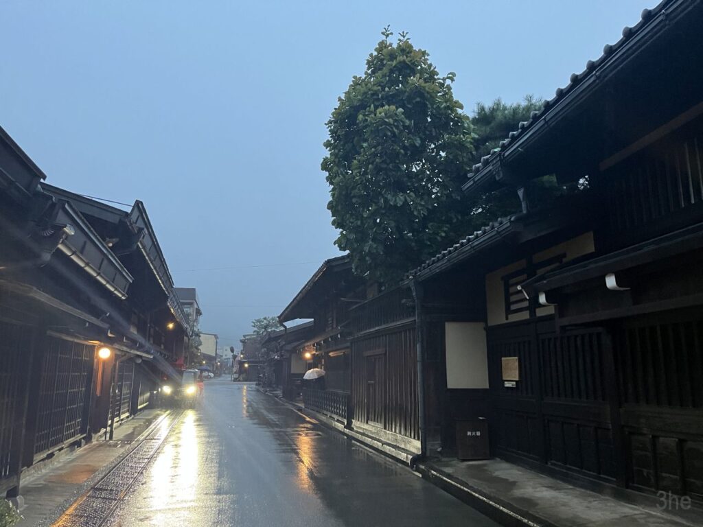 Takayama ist eine Stadt mit etwa 82.000 Einwohnern in der Provinz Gifu auf Honshu. Die Stadt liegt in einem Talkessel auf 573m Höhe in den Japanischen Alpen. Im Gegensatz zu den Europäischen Alpen ist die Gegend hier sehr schneesicher. Von Dezember bis April. Wie gut dass wir Ende Oktober waren. Das ist angeblich ein trockener Monat. Nur der Wettergott hatte das Memo anscheinend nicht gelesen. Denn wir sind im Regen aus dem Zug gestiegen und haben unser Quartier gesucht. Und haben dann mit Regenschirmen versehen die erste Stadtexkursion gemacht.