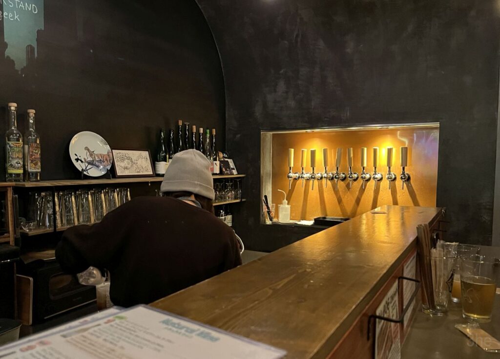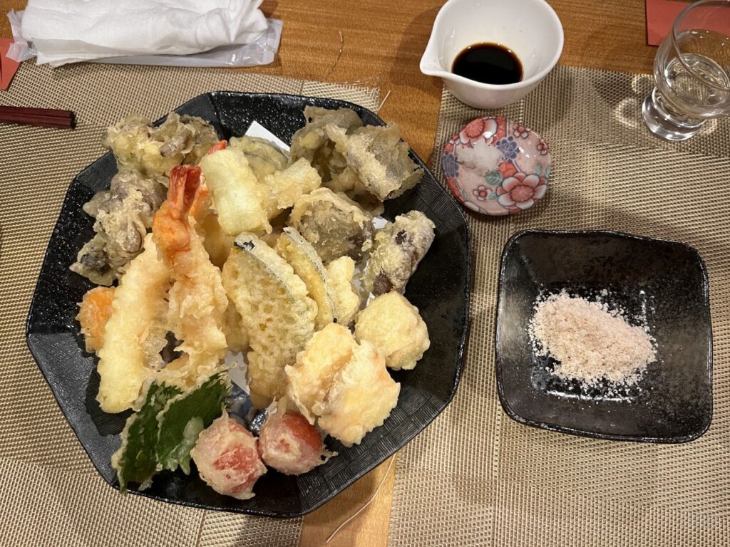 Dann war es auch schon Zeit für die Brauereiführung mit anschließender Verkostung. Danach war es finster und wir hungrig, also haben wir uns vom Guide durch die Sakebrauerei ein Izakaya empfehlen lassen. Ohne diese Empfehlung hätten wir da vermutlich nicht hingefunden und wären wenn dann vermutlich auch nicht rein gegangen. Der Guide hatte uns zwei direkt nebeneinanderliegende angesagt, wir sind in die zweite Wahl gegangen und es war großartig. Der Wirt konnte kaum Englisch, gerade mal ein paar Wörter. Aber immer noch mehr als wir Japanisch. G** Translate half diesmal auch nicht wirklich weiter, weil es mit der handgeschriebenen Karte nichts anfangen konnte. Der Wirt hat uns dann mal das im Gedeck inbegriffene Amuse gueule hingestellt und uns Tempura empfohlen. Haben wir dann bestellt, dazu einen Sake. Und es war das beste Tempura, das wir bisher bekommen haben. Da das Izakaya in einer nicht wirklich touristischen Nebenstraße lag, waren wir erstmal die einzigen Gäste, dann kam noch ein einzelner Japaner hinzu. Wir saßen still und haben unser Tempura gegessen und dem japanischen Gespräch der beiden gelauscht. Also der Sprachmelodie. Ab und zu hat dann der Wirt oder auch der Gast mal versucht was auf Englisch zu sagen und zu fragen. Es war wirklich sehr nett. Und da wir anderntags recht früh mit dem Bus weiter nach Kanazawa gefahren sind, sind wir nach dem Abendessen auch gleich wieder zu unserem Zimmer.