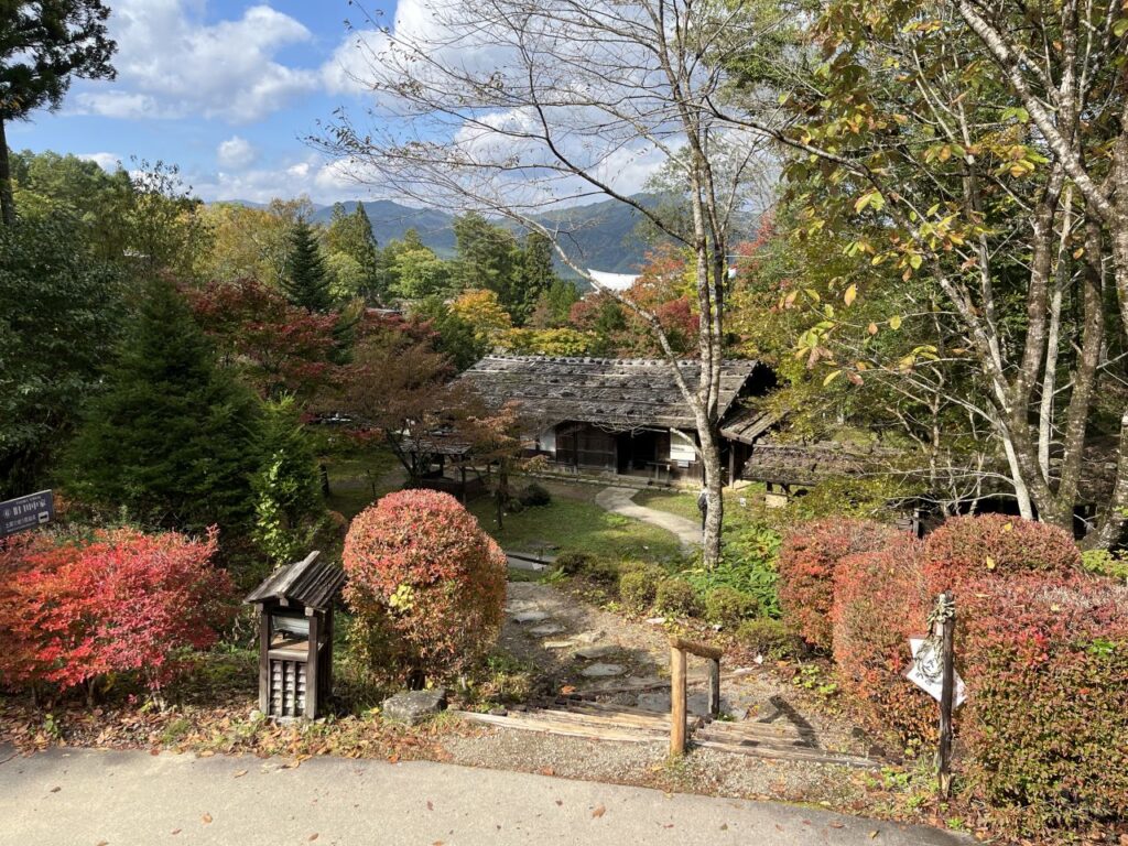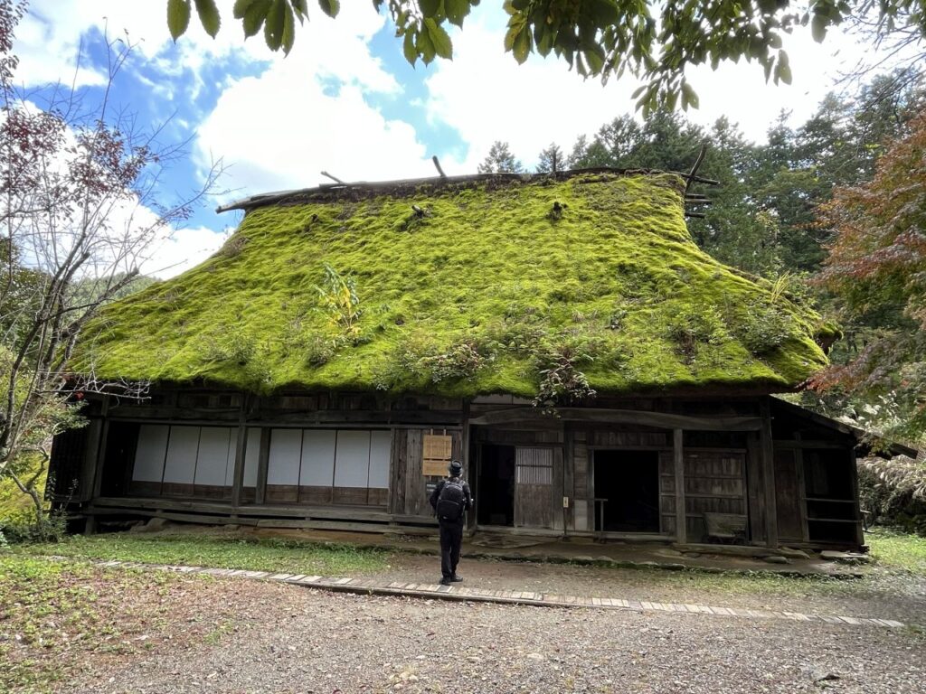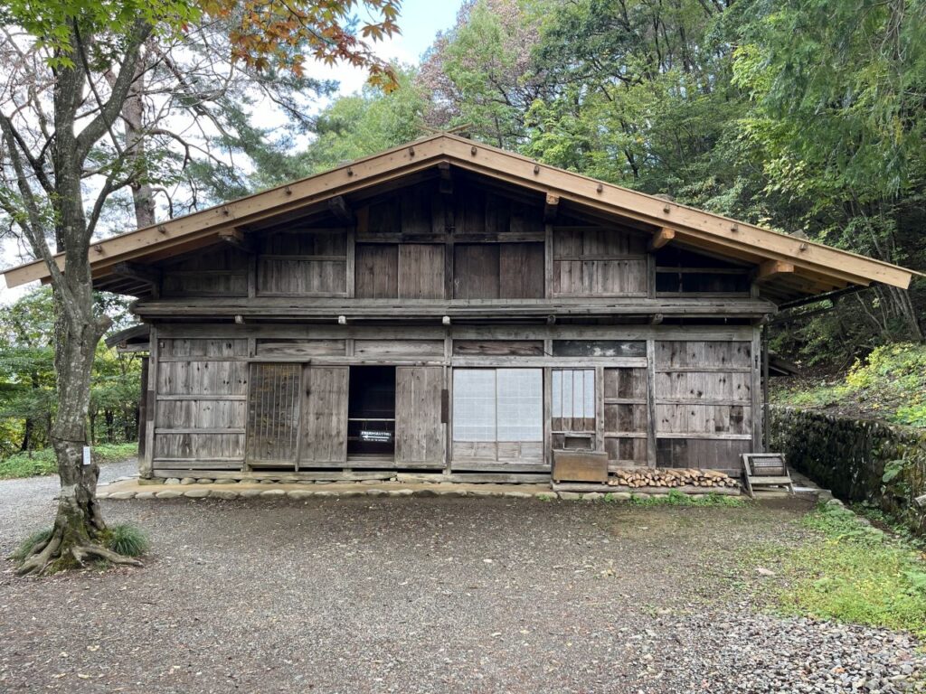 Dieses Haus ist eines der sogenannten Gassho-zukuri Häuser. Die Dachneigung ist etwa 60 Grad steil, damit der Schnee gut abrutschen kann. Die Holzkonstruktion wurde von Zimmerleuten gefertigt, während das Dach von der Dorfgemeinschaft errichtet wird, die etwa 4 Tage dafür benötigt hat. Diese Dächer bestehen aus Stroh und halten etwa 40-60 Jahre. Diese Haus hier stammt aus der Shokawa Region und wurde laut einer Inschrift 1797 erbaut. Typisch sind die Gassho-zukuri-Häuser vor allem für Shirakawa. Die in der dortigen Region noch vorhandenen sind großteils als Unesco Weltkulturerbe eingetragen. Vor allem für diese Häuser ist es wichtig, dass täglich das Herdfeuer brennt. Denn es sorgt für moderate Feuchtigkeit und hält Ungeziefer fern. Andererseits ist natürlich auch die Brandgefahr immer gegeben. Haus Wakayama
