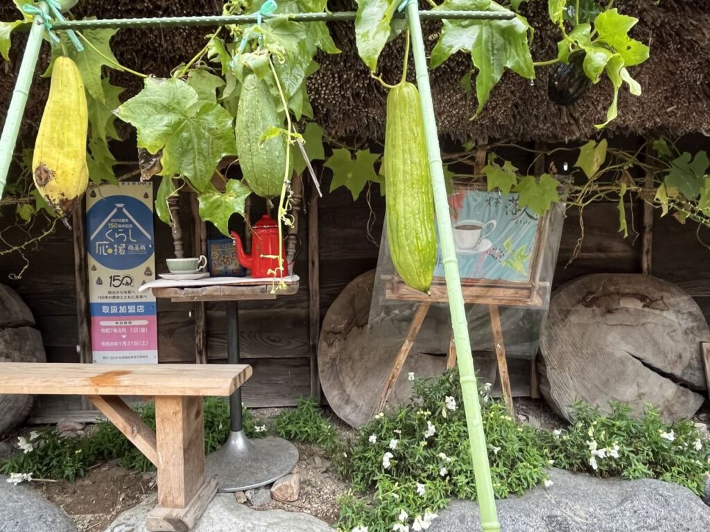 Das Flusstal ist eng, die angrenzenden Berge mit steilen Hängen bis zu 1500m hoch. Über 95 Prozent der Fläche ist bewaldet. Siedlung und Landwirtschaft teilen sich die wenigen flachen Flächen in Flussnähe. Landwirtschaft heißt in diesem Fall Reisanbau, daneben in ähnlich geringer Menge Buchweizen und Hirse. Das Leben war karg und hart, der Anbau reichte gerade fürs eigene Überleben. Zuverdienst kam in Form von Japanpapier (washi), anscheinend auch Salpeter für Schießpulver, und vor allem die Seidenraupenaufzucht. Letzteres kann bis ins 16. Jahrhundert zurückverfolgt werden, wirklich etabliert als Nebenverdienst hat sich die Serikultur im späten 17. Jahrhundert. Und blühte bis in die 1970er Jahre, ist nun aber gänzlich verschwunden. Der Bedarf an großen Innenraumflächen für die Seidenraupenfächer und auch für die Lagerung der Maulbeerbaumblätter führte dann auch zum gassho-zukuri-Baustil mit den mehrgeschossigen Dächern und dem Raumgewinn dadurch. Der Name kommt übrigens von der Dachform, bedeutet gassho doch „zum Beten zusammengelegte Hände“. Der Baustil ist dann auch in ganz Japan einzigartig und wirklich nur auf diese kleine Region in diesem schmalen Flusstal beschränkt.