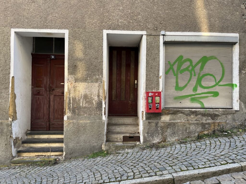 Inmitten all der Weihnachtsschlemmereien beim Besuch in der alten Heimat musste auch der eine oder andere Spaziergang sein. Und so sind wir an einem der Tage auch mal wieder durch die Altstadt von Sulzbach spaziert. Mit einem konkreten Ziel, die Hühner des abwesenden Sohnes der Cousine zu füttern und die Katze zu bespaßen. Am Weg gab es dann so viele interessante oder auch skurile Details zu sehen, dass das Maximum von 25 Fotos für den Monatsspaziergang ganz schnell erreicht war. Auf der Strecke bleiben mal wieder die Straßenansichten der stellenweise auch recht hübschen Altstadt.