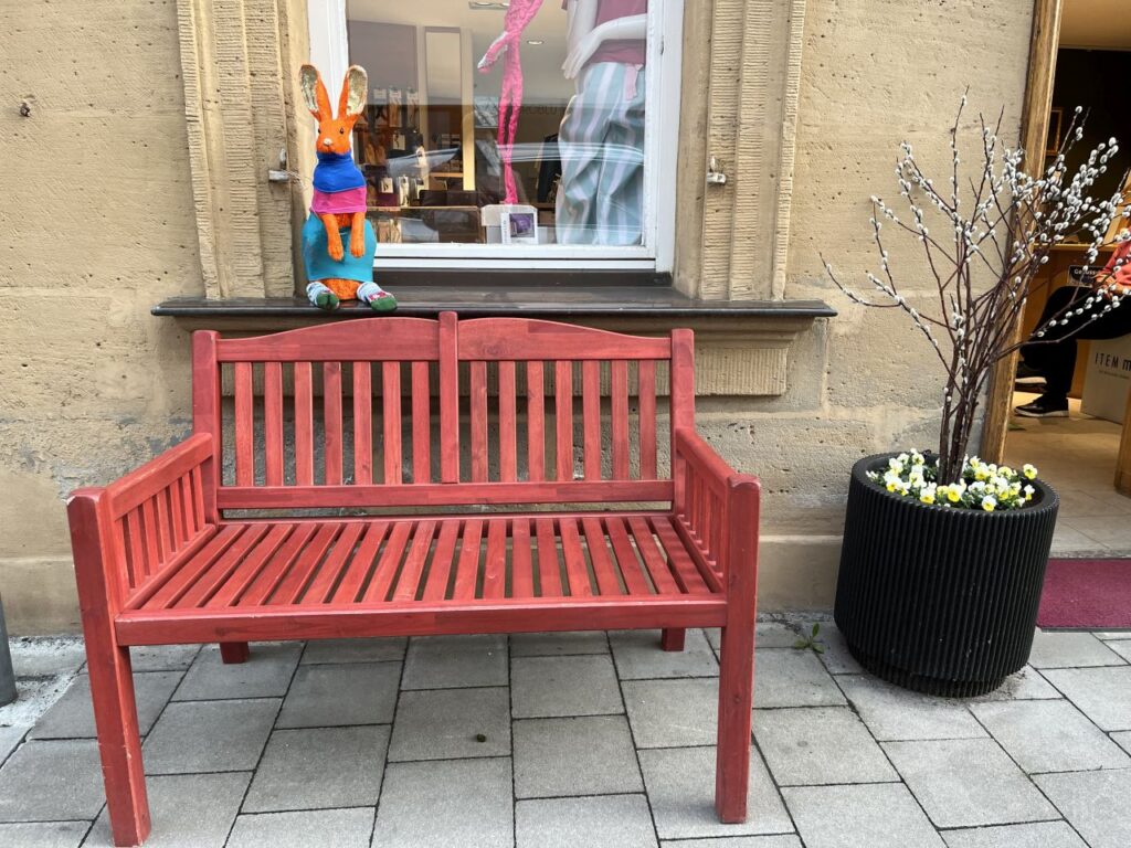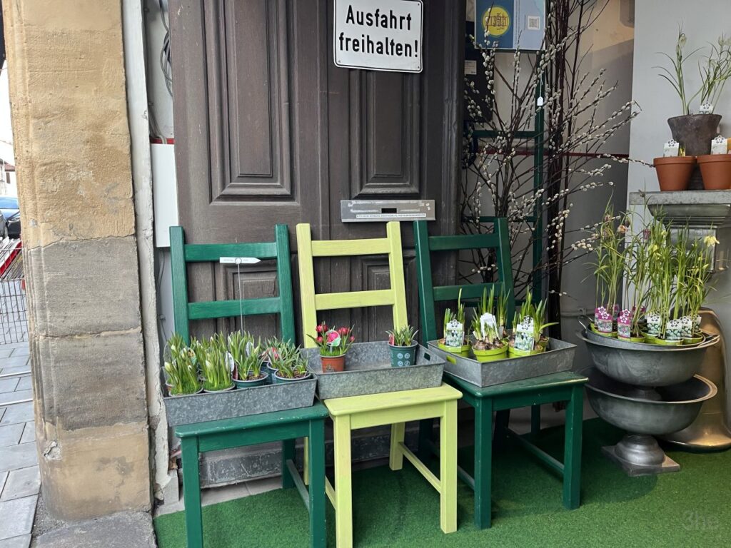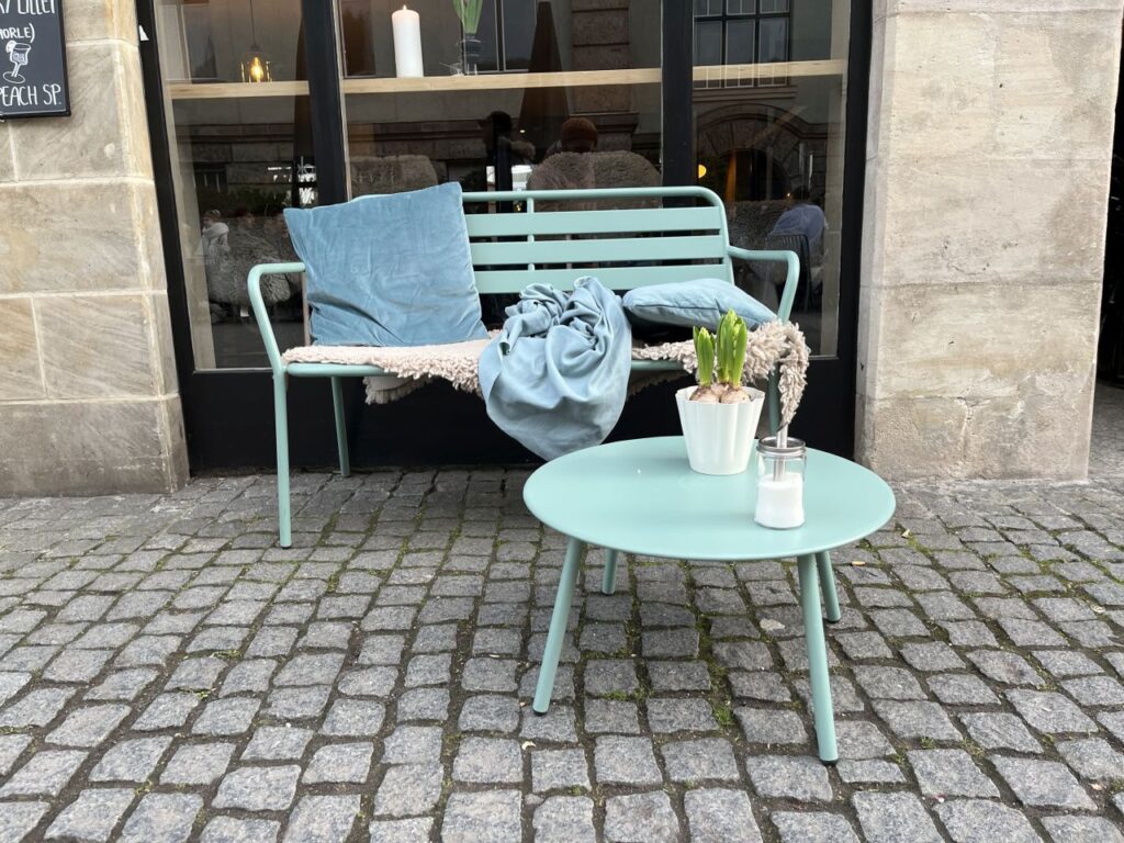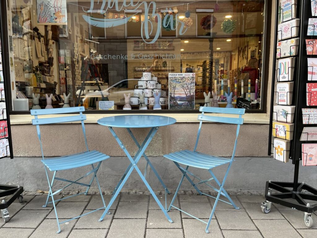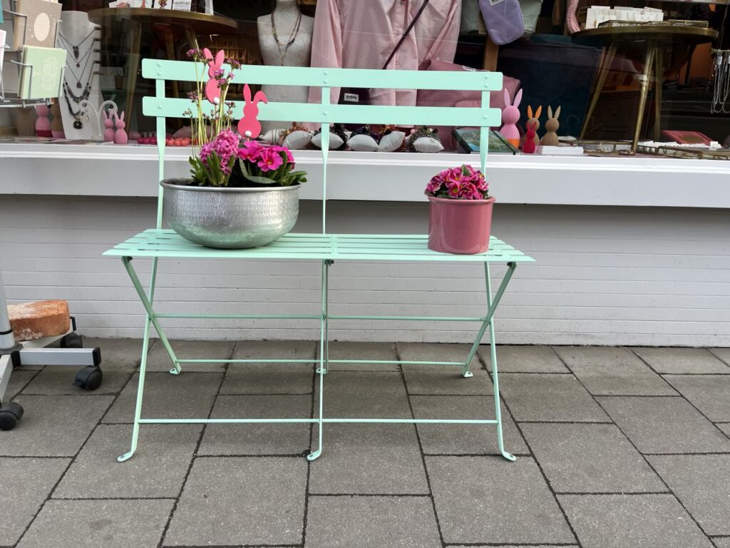 Auf unserem Spaziergang sind mir jedoch eine Vielzahl von netten Sitzgelegenheiten vor diversen Ladenlokalen aufgefallen, die ich natürlich fotografiert habe. Und weil diese Sitzgelegenheiten für eine kleine Pause zwischendurch gar so nett waren, gibt es die nun als eigene Fotoserie. Mit ein bisschen anderer Deko dazwischengestreut.