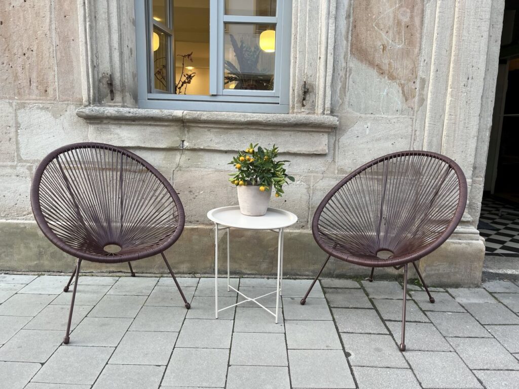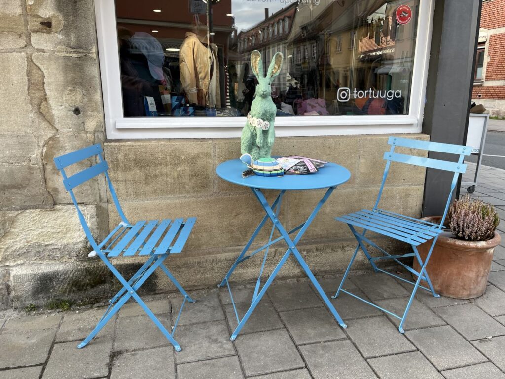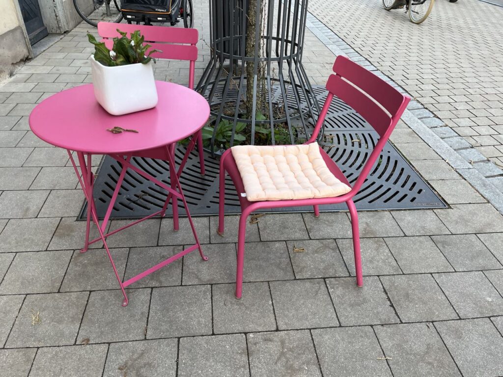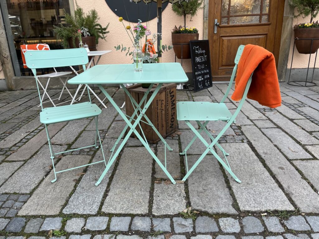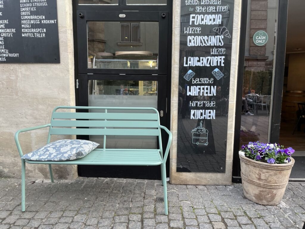 Auf unserem Spaziergang sind mir jedoch eine Vielzahl von netten Sitzgelegenheiten vor diversen Ladenlokalen aufgefallen, die ich natürlich fotografiert habe. Und weil diese Sitzgelegenheiten für eine kleine Pause zwischendurch gar so nett waren, gibt es die nun als eigene Fotoserie. Mit ein bisschen anderer Deko dazwischengestreut.