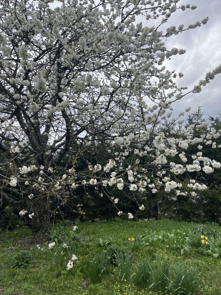Im Obstgarten blühen die Bäume. Entlang der Hauptstraße dominieren große Ostereier als Osterdeko.