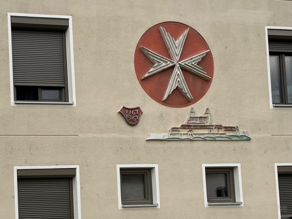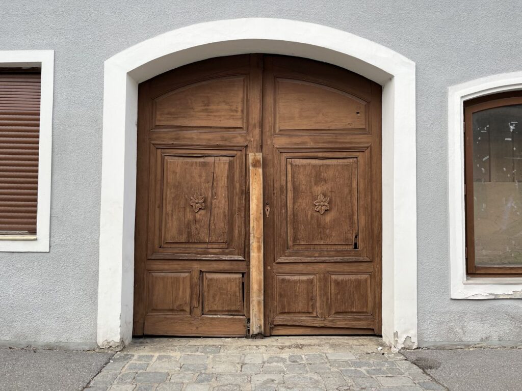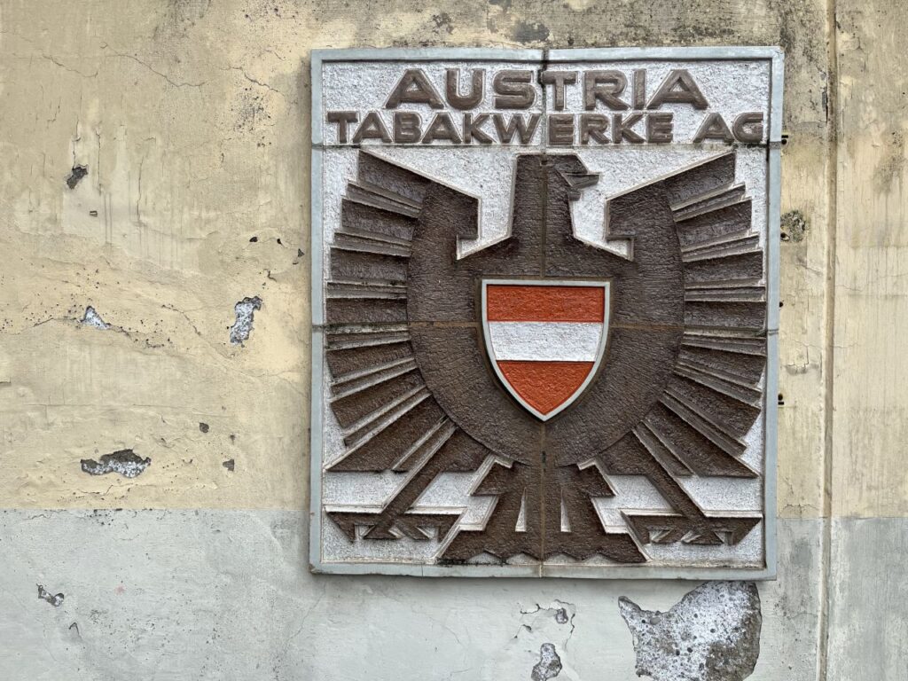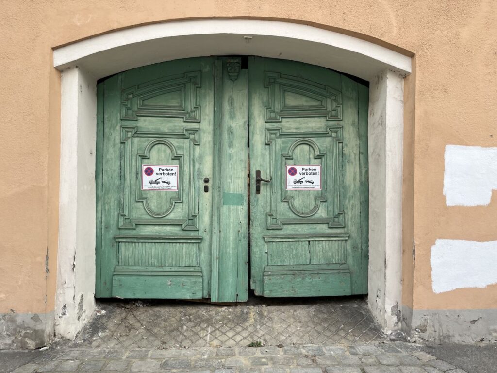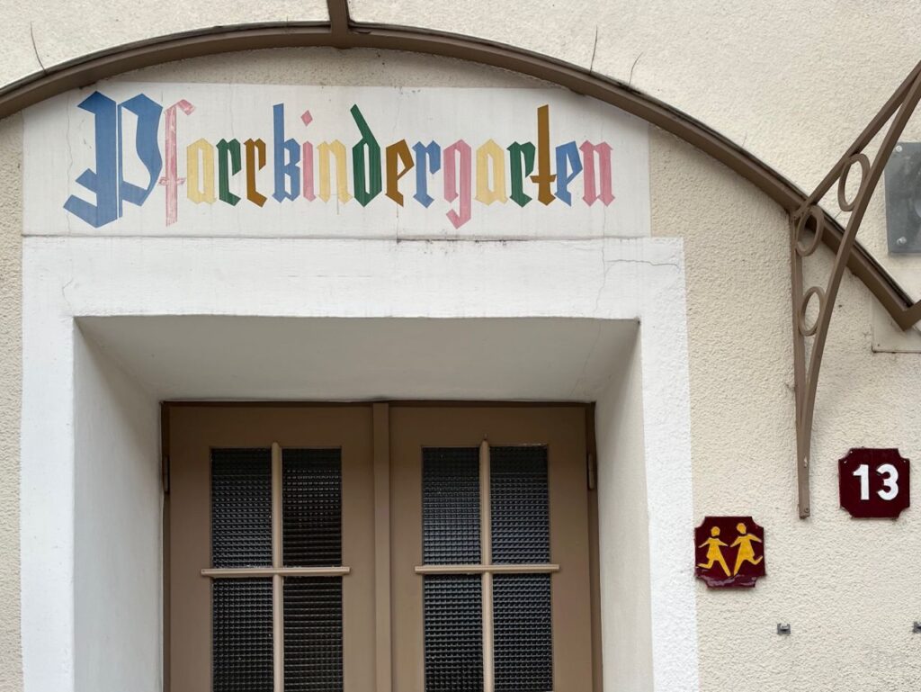 An der ehemaligen Tabakfabrik gehen wir diesmal nur vorbei.Die Kirchentür ist von der Fleischweihe am Nachmittag noch offen, also werfen wir einen kurzen Blick hinien.Die Stadtpfarre war lange in den Händen des Joanniterordens, an Gebäuden um die Stadtpfarrkirche findet man noch Hinweise darauf.Pfarrkindergarten in der Kommendegasse.Gegenüber des Joanniterareals wartet in der Kommendegasse ein Leerstand auf die Abbrucharbeiten durch den Investor.Am Hauptplatz wurde die Mariensäule mit österlicher Deko auf grünem Kunstrasen umgeben. Die Deko sorgt dann auch für ungläubige Blicke und amüsierte Grinser bei diversen Spaziergängern.Grüner Schriftzug und Schaufenstergalerie.