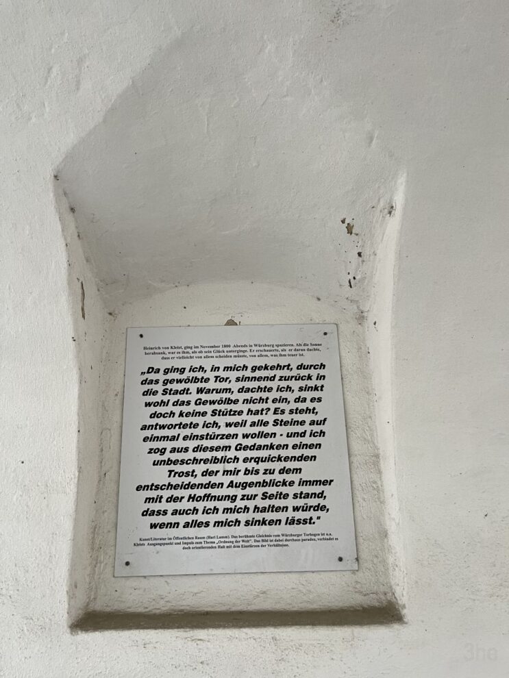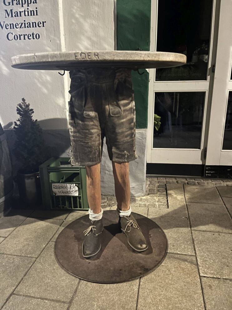 Wir biegen wieder zurück Richtung Hauptplatz ab und finden in einem Durchgang diesen Spruch. Der schräge Tisch ist uns dann noch am Weg zum Auto begegnet.